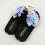 XMISTUO Black Flat Sandal with Flowers