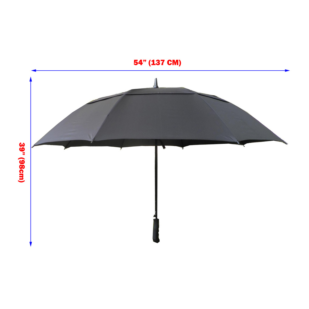 54" Double Canopy Windproof Black Stick Golf and Fishing Umbrella
